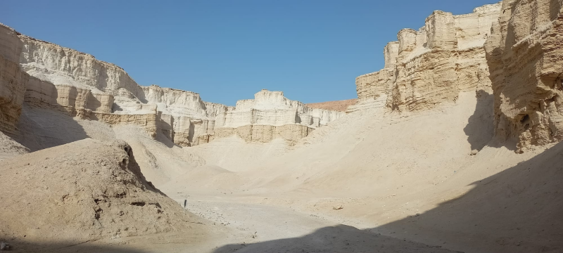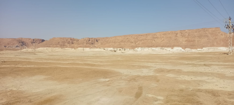 Hier zie je duidelijker van een afstand Sodom, het licht gele gedeelte