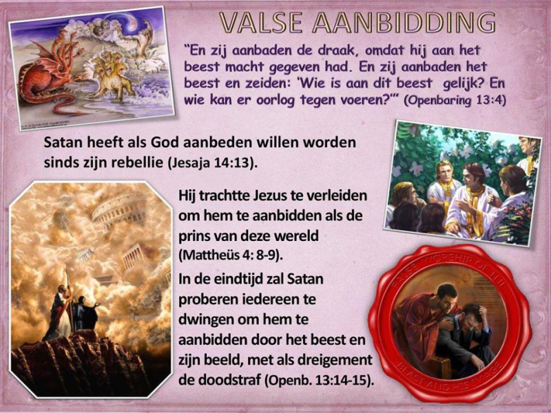 Satan kan deze ontwikkeling binnen de kerken heel goed gebruiken totdat die éénheid er komt en dan zal hij zelf en zijn beeld het voorwerp van aanbidding zijn. Alle andere vormen van aanbidding zal hij niet tolereren en daarop de doodstraf eisen.