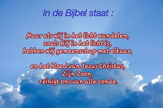 Het bloed van Jezus, Gods Zoon, reinigt ons van alle zonde. 1 Joh. 1:7