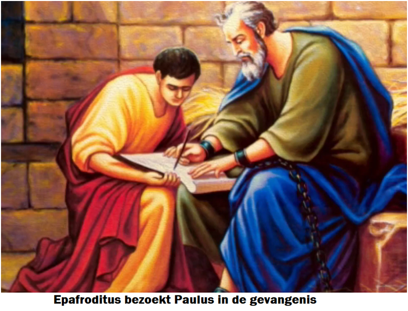 Ik heb het echter nodig geacht Epafroditus naar u toe te sturen, mijn broeder, medearbeider en medestrijder........ Paulus heeft Epafroditus, die lid is van die gemeente, al gestuurd. Epafroditus was naar Paulus gezonden om hem bij te staan. In Filippenzen 4:18 lezen we wat Epafroditus al voor Paulus heeft gedaan, wat hij heeft ervaren als een welriekende reuk, een aangenaam, God welbehaaglijk offer.