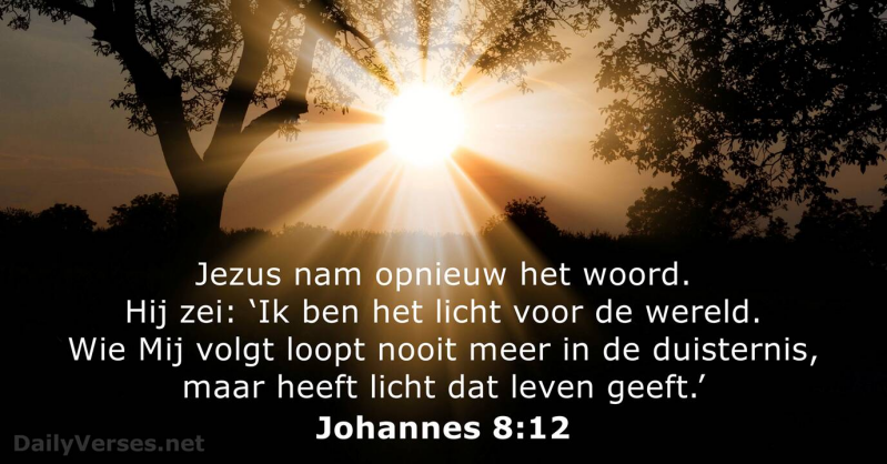 16. Laat uw licht zo schijnen voor de mensen, dat zij uw goede werken zien en uw Vader, Die in de hemelen is, verheerlijken.