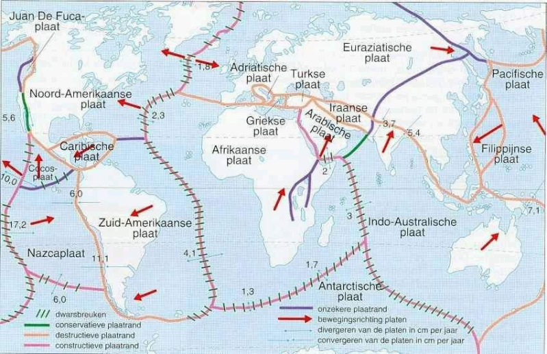 ← Links op het plaatje de breuklijnen die over de aarde lopen.