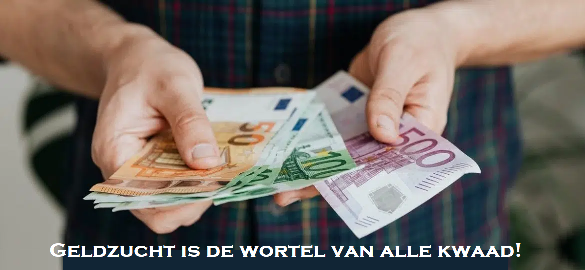 1 Timotheüs 6:9-10 Maar wie rijk willen worden, vallen in verzoeking en in een strik en in veel dwaze en schadelijke begeerten, die de mensen doen wegzinken in verderf en ondergang. 10. Want geldzucht is een wortel van alle kwaad. Door daarnaar te verlangen, zijn sommigen afgedwaald van het geloof, en hebben zich met vele smarten doorstoken.