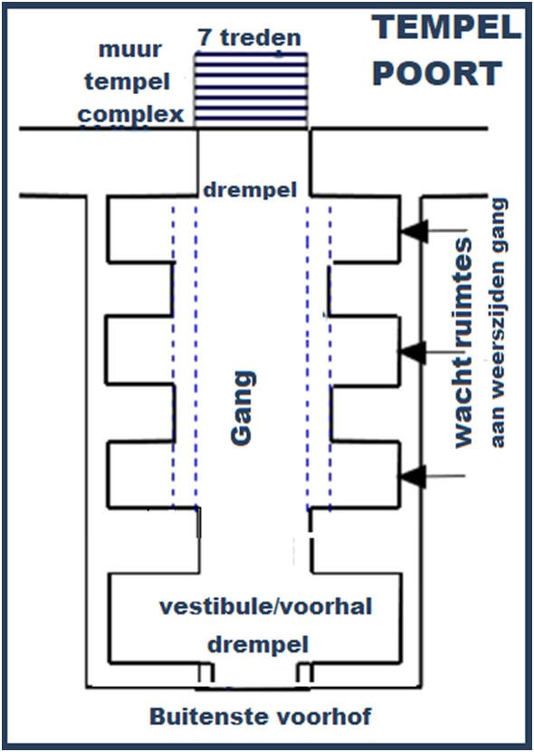 De poort was een gebouw op zichzelf van aanzienlijke omvang. De kamers of wachtruimtes waren voor de Levieten die controle moesten uitoefenen op degenen die de tempel binnenkwamen. Het gebouw had weliswaar ramen, maar zonder glas. Een soort lattenstelsel dat aan alle kanten naar binnen gericht was om licht te geven. Je kon de ramen niet open en dicht doen.