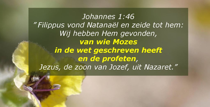 46 Filippus vond Nathanael en zei tot hem: Wij hebben Hem gevonden van Wie Mozes in de wet geschreven heeft, en de profeten: Jezus, de Zoon van Jozef, van Nazareth.