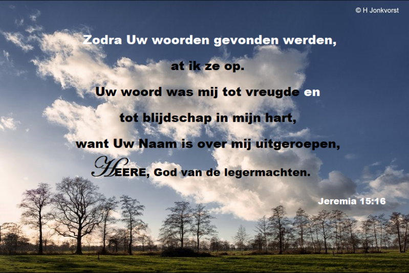 Zodra Uw woorden gevonden werden, at ik ze op. Uw woord was mij tot vreugde en tot blijdschap in mijn hart........