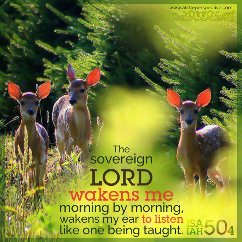 Jesaja 50:4 De Heere HEERE gaf Mij een tong van een die onderwijs ontving, zodat Ik weet met de vermoeide een woord op de juiste tijd te spreken. Hij wekt Mij elke morgen, Hij wekt Mij het oor, zodat Ik hoor als zij die onderwijs ontvangen.