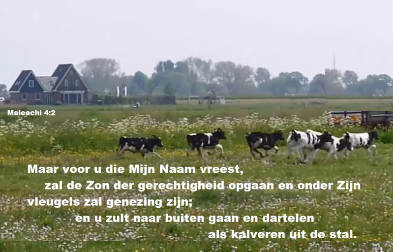 om voor de gevangenen vrijlating uit te roepen en voor wie gebonden zaten..... In de tijd van Jesaja waren er de ballingen die gevangen zaten in Babel. In alle tijden zijn er gevangenen in gevangenissen, maar ook hen die door slavernij, of om andere redenen door anderen geknecht worden. Ze kunnen zelfs door demonen gevangen zijn. Maar als het Vrederijk aanbreekt, het Jubeljaar, dan is er vrijlating voor allen. Ze zullen als kalveren die uit de winterstal komen, dartelen van vreugde. (Maleachi 4:2)