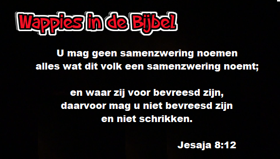 U mag geen samenzwering noemen alles wat dit volk een samenzwering noemt…… Het lijkt wel geschreven voor onze tijd. Een samenzwering is een complot! Je wordt al snel beticht een complotdenker (wappie) te zijn als je de politieke opvattingen niet onderschrijft. Profeten werden ook monddood gemaakt en de mensen volgen al snel de meerderheid. Jesaja en degenen die op God bleven vertrouwen waren in feite wat nu wappies genoemd worden.