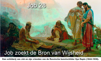 Zij is bedekt voor de ogen van alle levenden...... het gekke is dat mensen van zichzelf denken best wijs te zijn. Maar dat komt omdat ze vol zijn van de wereldse wijsheid. Job probeert duidelijk te maken dat er een wijsheid is die veel beter is dan alle scherpzinnigheid waarmee mensen edele metalen en mineralen uit de bodem halen. Die wijsheid gaat dieper dan een man in de mijnschacht kan afdalen. Maar ook hoger dan de vogels in de lucht vliegen.