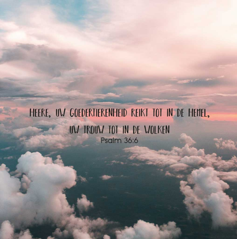 David ziet het contrast tussen de “goedertierenheid” van God en de immense “verdorvenheid” van de goddeloze. Gods betrouwbaarheid en rechtvaardigheid is zo enorm groot, dat David de reikwijdte daarvan ziet vanaf de aarde tot hoge bergen, tot in de wolken, ja zelfs tot in de hemel! Een menselijke manier van uitdrukken van iets wat niet uit te drukken is, zo onvoorstelbaar! Maar hij weet ook dat Gods oordeel zich eenmaal heeft gemanifesteerd in een geweldige zondvloed waarbij Hij een overblijfsel van mens en dier redde.