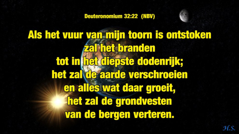 Deut. 31:28 Roep alle oudsten van uw stammen en uw beambten bij mij samen. Ik zal deze woorden ten aanhoren van hen spreken en DE HEMEL EN DE AARDE TOT GETUIGE TEGEN HEN NEMEN.