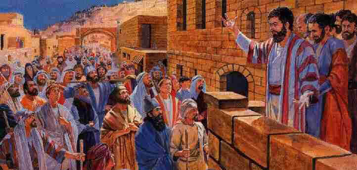 De discipelen spraken vrijmoedig vanuit Gods Geest tot de Joden, waarvan er velen vanuit de diaspora naar Jeruzalem waren gekomen voor het Wekenfeest. Het waren hier niet de farizeeën en schriftgeleerden die, zoals gebruikelijk de leiding hadden. Het waren de vanouds vissersmannen die van God de autoriteit kregen om Zijn Woord te spreken. Het werd door God bevestigd door het zichtbare vuur op hun hoofden, het geluid van een geweldige windvlaag en het spreken in allerlei talen.